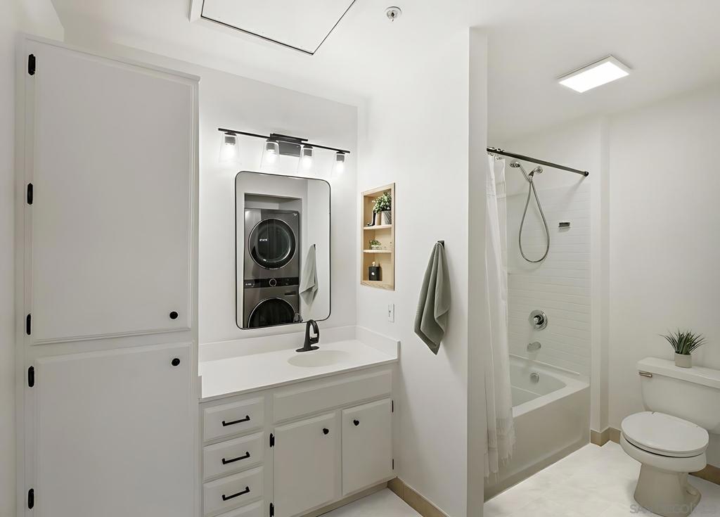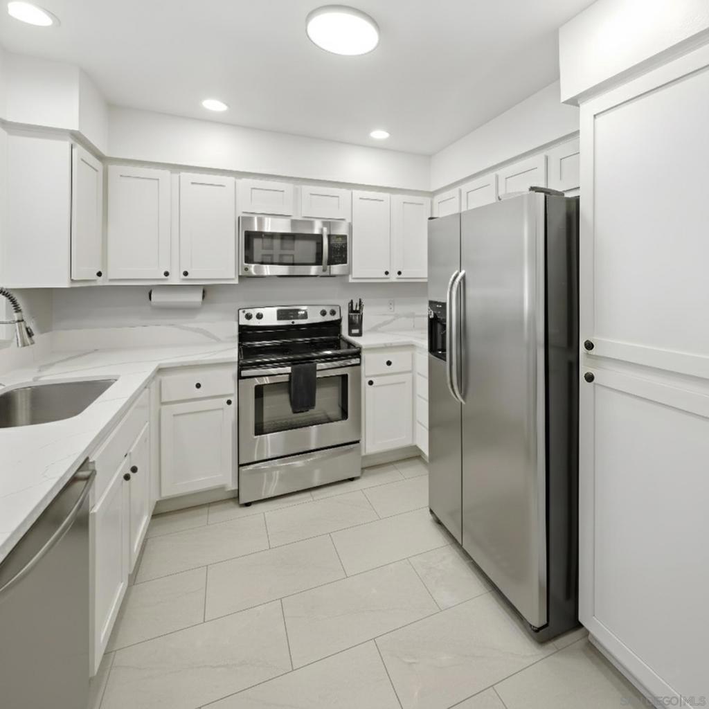 $2,053Stunning , sunny premier location, upper-level home welcomes you the moment you step through the door! Nestled in the highly sought-after gated community of Vista Del Lago, this beautifully/recently upgraded and meticulously maintained unit lives bigger than its size with the airy, vaulted ceilings and open space views! Dark Bamboo wood floors flow through the living room, dining area, hallway, & primary bedroom, complementing the custom-designed kitchen featuring new modern flooring and quartz counters, stainless steel sink and appliances. Unique to this unit is the large entry closet and additionally, a pull-down attic offers even more space for storing larger items. Primary walk-in closet has also been extended. Take in lush views from the private balcony. Assigned covered carport is directly in front. This home is a true gem! Schedule a tour today before someone else gets this beautiful move in ready home! Complex now approved for Fanny Mae and conventional lending. Come check out the Bernardo Vista Del Lago resort lifestyle complete with 2 community hot tubs, 3 pools (including 25-meter exercise lap pool), fully equipped exercise gym, pickleball, tennis, recreation room, duck pond and scenic hiking and biking trails. When you're done enjoying all of the community amenities, . Plenty of guest parking spots , as well as EV charging stations for convenience.